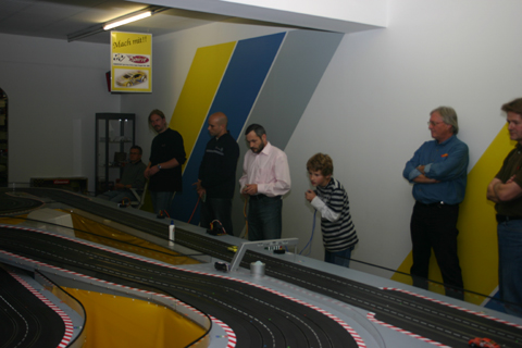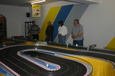 Um keine Missverständnisse aufkommen zu lassen: Werners neue Carrera Bahn ist ein wirklicher Leckerbissen. Das mit dem bissi weniger Grip ist darauf zurückzuführen, daß bisher wenig Veranstaltungen darauf abgehalten wurden und daß meine Gummireifen wohl nicht so ganz dieser Situation entsprechend geschliffen waren. Club-Bahnen haben da natürlich den Vorteil vieler tausend gefahrener Runden. Werner hat hier eine tolle Bahn gezaubert, die wirklich jedem Spass macht und die bestimmt demnächst deutlich mehr Fahrer und damit mehr Grip erfahren wird.