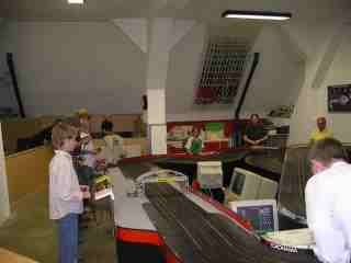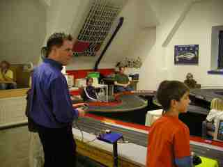 Tobias fuhr mit der gelben Lola, aufbereitet von Papa Gerd, dass es eine Freude war. Seine Erfahrung in diversen überregionalen Rennen, inklusive DPM (deutsche Plafit Meisterschaft), machte mir nicht zum erstenmal zu schaffen. Ich denke mit einem gewissen Schaudern an die Packung, die unser "internationales Team" beim Qualifying zur DPM von den Youngsters bekommen hat. Nur der "Gott des Defektes" bei diesem Team hat uns da vor Üblerem bewahrt. Und seine entspannte Reglerhaltung sehe ich mit einer gewissen Portion Stolz, guggt mal, dann wisst Ihr von was ich spreche ;-)