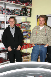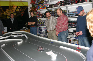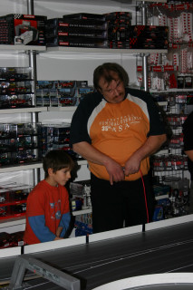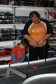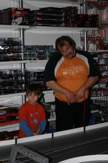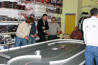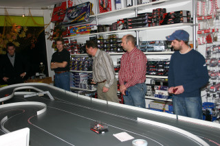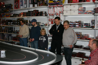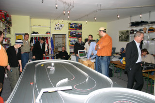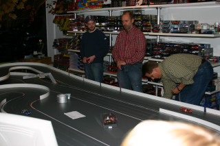 Werner hatte extra für das erste Rennen einer Serie in seinem Laden die Bahn um ein Modul erweitern lassen ... eine super Idee, die tatsächlich eine Extraportion Spaß brachte.