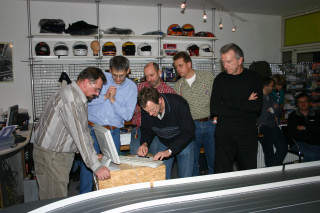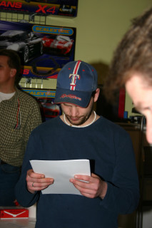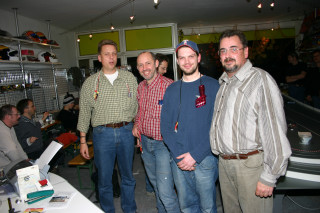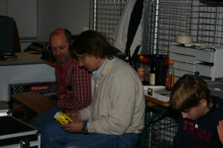 Auf Werner Lorenz's (Powerpoint) 3spurige Holzbahn von Plazidus waren wir alle bereits gespannt, der letzte Ausflug auf ne Holzbahn (RaceCity) lag bereits einige Saisonen zurück und damals noch mit den Plastikfelgen, die uns zu der Zeit auch prompt um die Ohren flogen. Mittlerweile sind Alufelgen ein fest etabliertes Zubehörteil, welches auch für ein Stück Zuverlässigkeit sorgt.