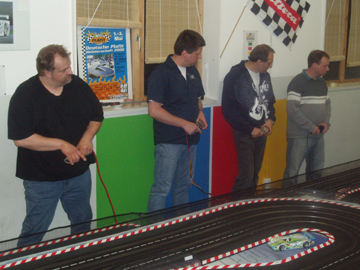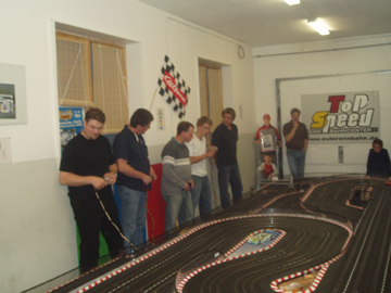 Auf der tollen Rennbahn in Grafing, die mit einem beispiellosen abwechslungsreichen Layout auf relativ kleinen Raum aufwartet, konnten die ohnehin superstarken Topfahrer Tobi, Julian und Gerd den Vorteil ihrer Heimbahn gnadenlos ausnutzen.