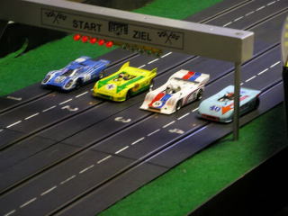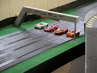 - Ralf ließ diesesmal seinen GT40 zuhause und zückte den ungeliebten Porsche 917/10, der aber eine sehr gute Figur auf Lothars Carrera machte, kein Hoppeln, kein unvermutetes Herausfliegen, der kleine "Unverstandene" fühlte sich sichtlich wohl mit seinem Fahrer Ralf.